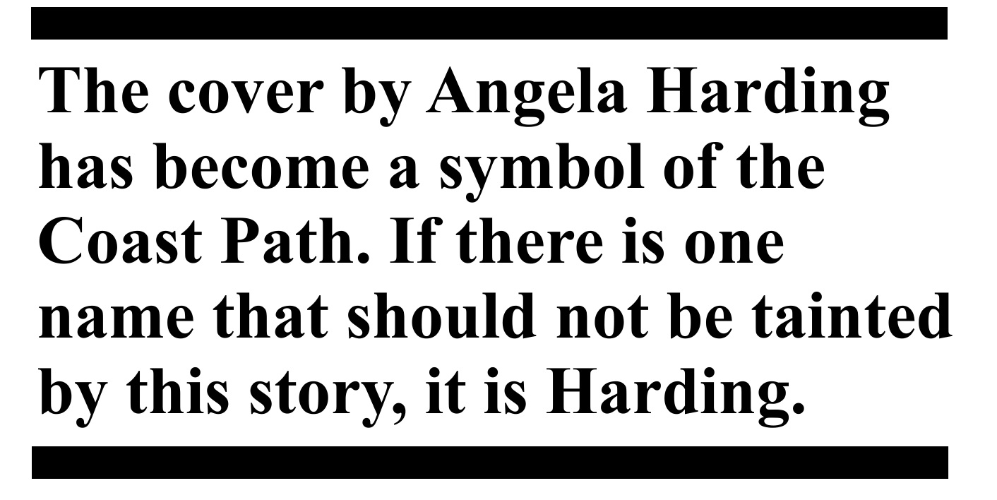 The cover by Angela Harding has become a symbol of the Coast Path. If there is one other name that should not be tainted by this story, it is Harding. It really is a beautiful cover image. How emblematic this now is of the phrase ‘never judge a book by its cover’.